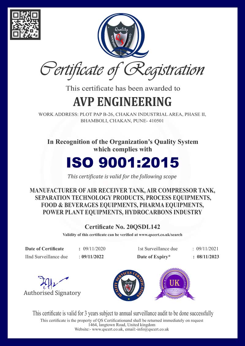 We, at AVP Engineering are committed to Manufacturing & Supply of Pressure Vessels, Oil & Gas Piping's, Tanks and crystallizers for customized product mfg. company to achieve "Delightment" of all Stakeholders.